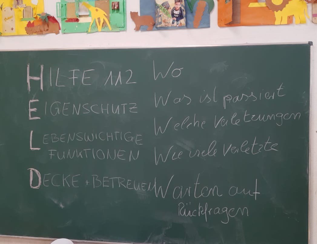 Im Rahmen des sogenannten „Pflasterdiploms“ konnten die Schülerinnen und Schüler an zwei Nachmittagen spielerisch lernen, wie man kleine Wunden versorgt, Pflaster richtig klebt und einen Notruf absetzt. DRK-Mitarbeitende führten durch zwei interaktive Einheiten, in denen praktische Übungen und kindgerechte Theorie im Mittelpunkt standen.